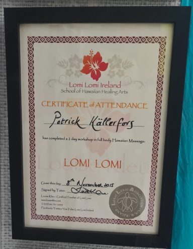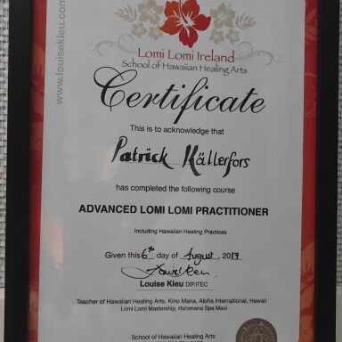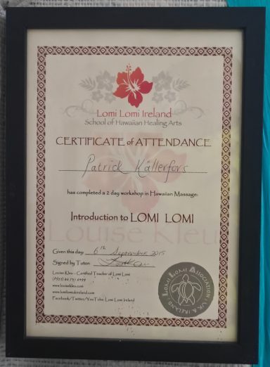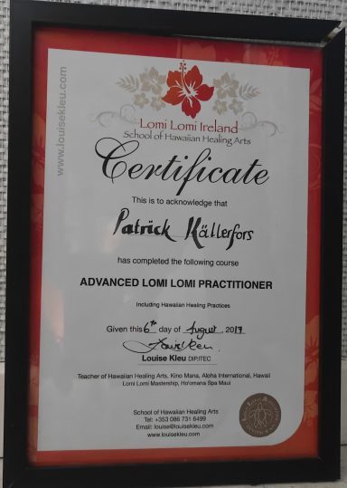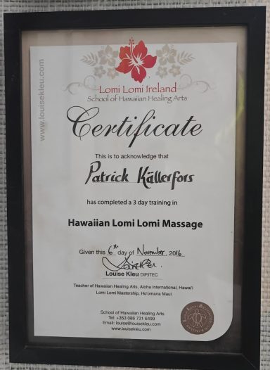 And 2018 I took my Lomi Lomi from advanced practitioner to teachers level to be able to spread the Lomi Lomi and aloha in Sweden.